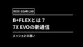 B+COM 7X EVOは、B+COM同士では**B+FLEX(MESH/ONLINE)で通話する設計です。