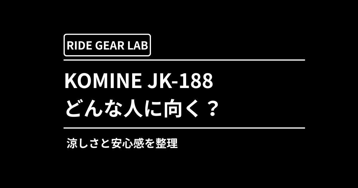 そこでこの記事では、KOMINE JK-188の特徴を整理しながら、